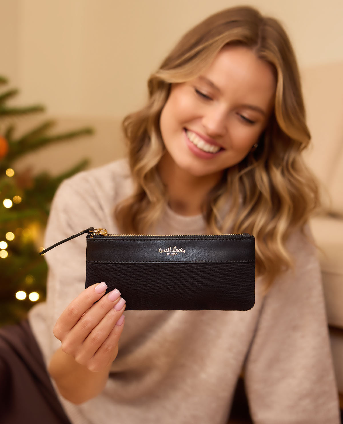Niezależnie od tego, czy na co dzień, czy w podróży – z „Everly“ zawsze masz swoje kosmetyczne niezbędniki stylowo pod ręką. Ta kosmetyczka, wykonana z eleganckiej czarnej skóry, łączy ponadczasową elegancję z praktyczną funkcjonalnością, czyniąc ją idealnym towarzyszem na każdą okazję.