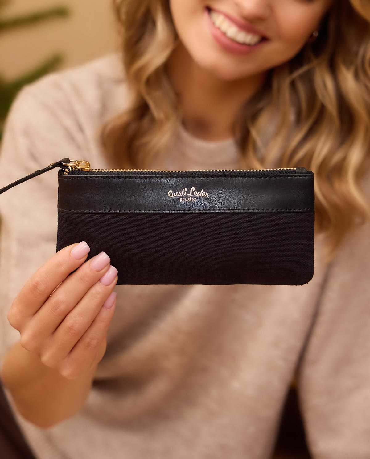 Przemyślany design oferuje wystarczająco dużo miejsca na makijaż, produkty pielęgnacyjne i drobne akcesoria, a wysokiej jakości skóra zapewnia trwałość i luksusowy wygląd. Dzięki kompaktowym rozmiarom „Everly“ z łatwością zmieści się w Twojej torebce lub bagażu podróżnym.