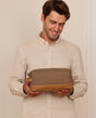 Nadal brakuje Ci odpowiedniej kosmetyczki? Przestań szukać! W „Myrze” możesz przechować wszystko, czego potrzebujesz w podróży, w tym szampon, szczoteczkę do zębów i dezodorant. Połączenie skóry i płótna zapewnia to, co najlepsze z obu światów: z jednej strony najważniejsze elementy są szczególnie stabilne i wytrzymałe, a z drugiej strony „Myra” jest również bardzo elastyczna. Dzięki temu zawsze będziesz mieć przy sobie wszystkie potrzebne kosmetyki i będziesz wyglądać stylowo.