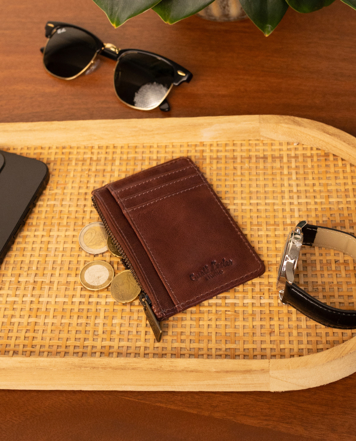 Portfel "Arlan" to nie tylko praktyczny dodatek – to stylowy towarzysz, który organizuje Twoje życie. Wykonany z wysokiej jakości brązowej skóry, zachwyca swoją prostą elegancją i doskonałym wykonaniem. Szlachetny brązowy kolor i delikatna faktura skóry czynią go ponadczasowym klasykiem, który zarówno w kieszeni, jak i w dłoni pozostawia trwałe wrażenie.