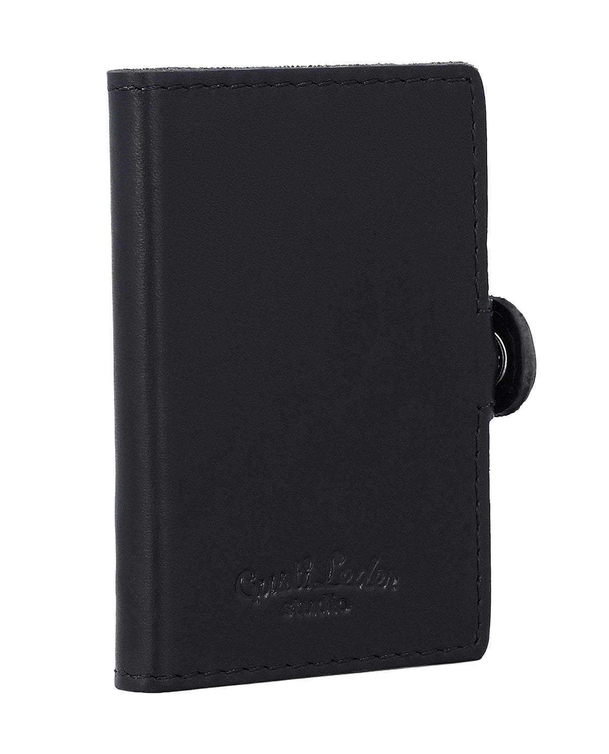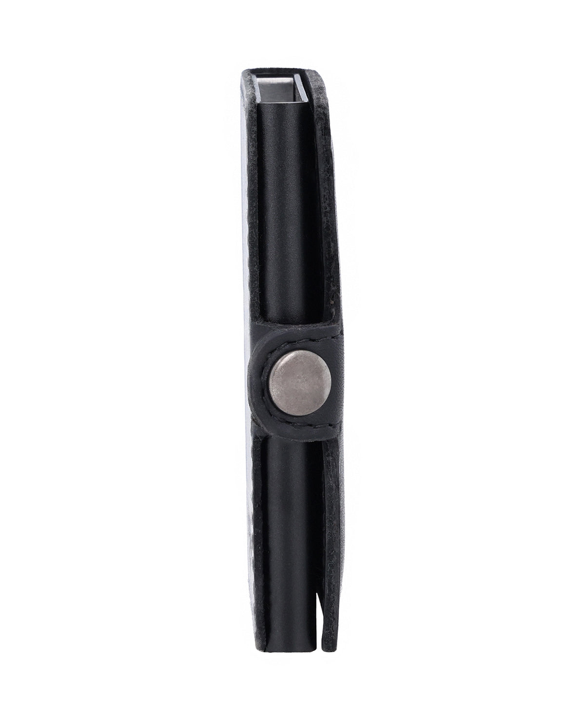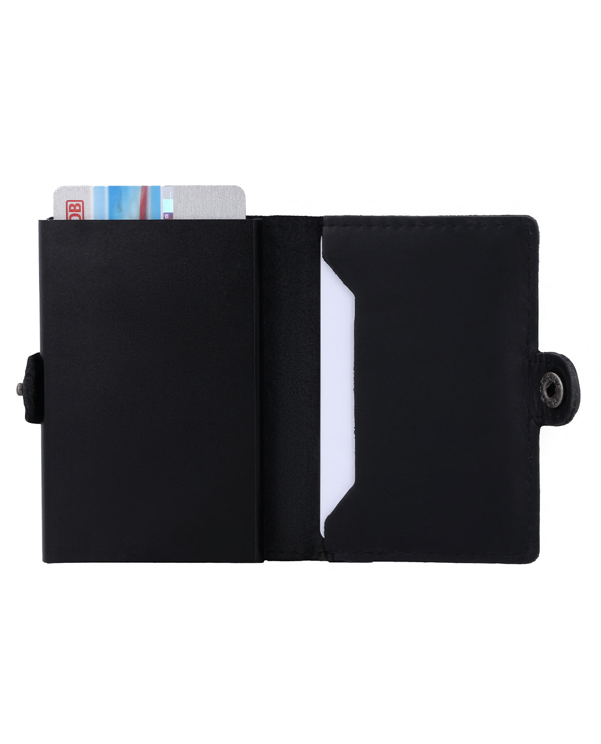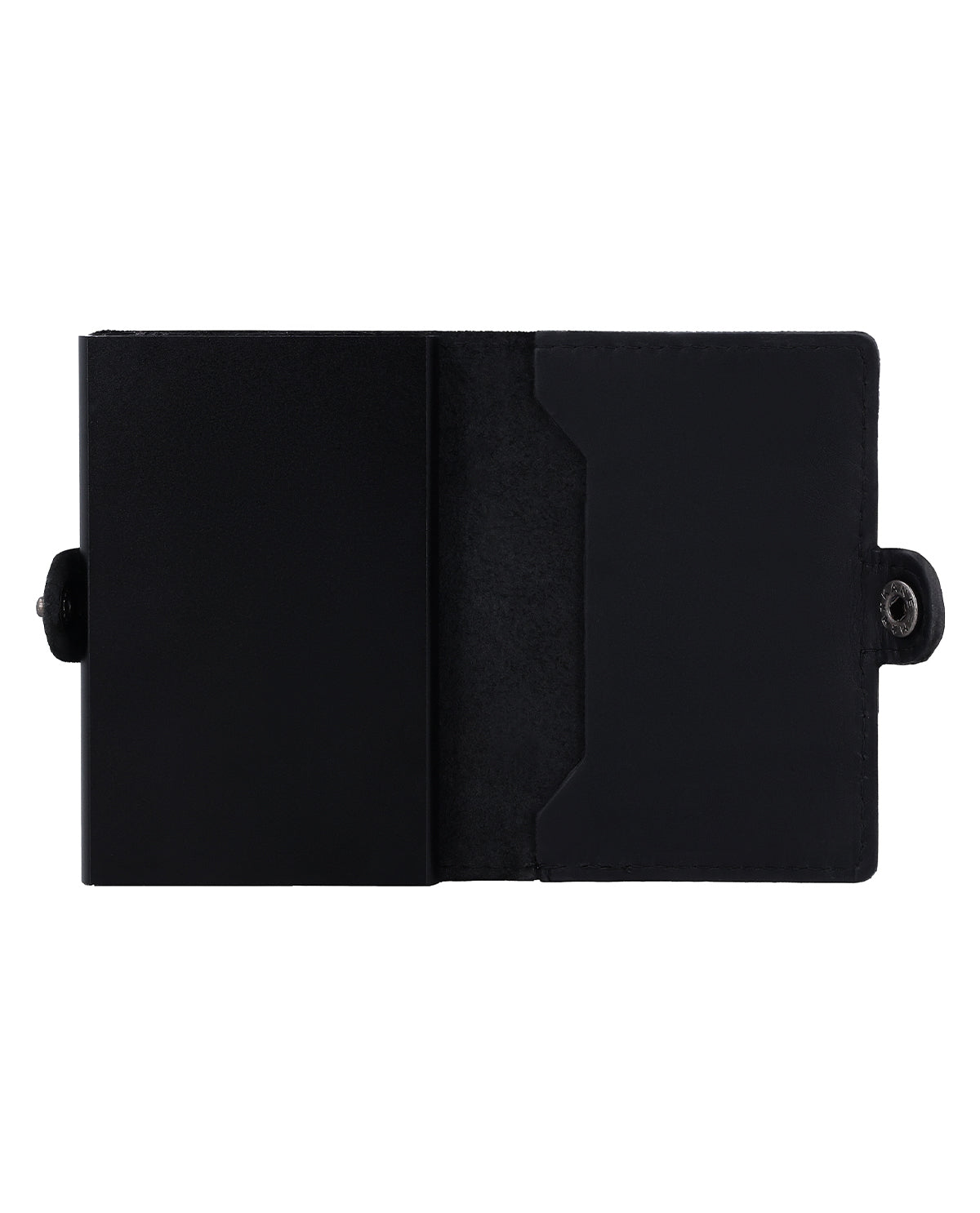 Czarna portmonetka „Murat” to portfel dla mężczyzn, który łączy w sobie funkcjonalność i przejrzysty design. Jego sercem jest automatyczny mechanizm wysuwany, dzięki któremu karty wysuwają się do góry po naciśnięciu przycisku. Zintegrowana aluminiowa obudowa niezawodnie chroni karty i nadaje portfelowi nowoczesną stabilność. Dzięki zapięciu na zatrzask wszystko pozostaje bezpiecznie schowane, a prosty design sprawia, że portfel wygląda elegancko i minimalistycznie.