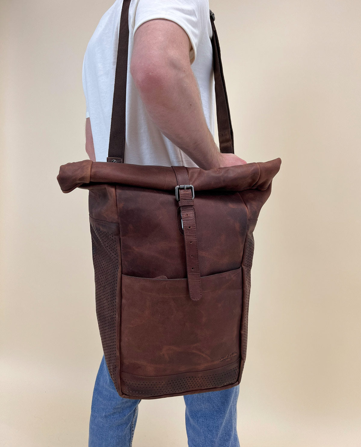Oto Twój nowy skórzany ulubieniec: "Miquel I." zachwyca prawdziwą skórą w wyjątkowo solidnym wykonaniu i przemyślanym designem rolltop. Dzięki regulowanemu zapięciu na klamrę Twoja rowerowa przygoda będzie równie bezpieczna, co stylowa. Czy to laptop, notatniki czy przenośny głośnik na wieczór w parku – z "Miquel I." masz wszystko pod ręką. Mobilność spotyka się z funkcjonalnością, nie rezygnując z stylu. Po prostu wsiądź na rower, ruszaj i miej wszystko pod kontrolą.