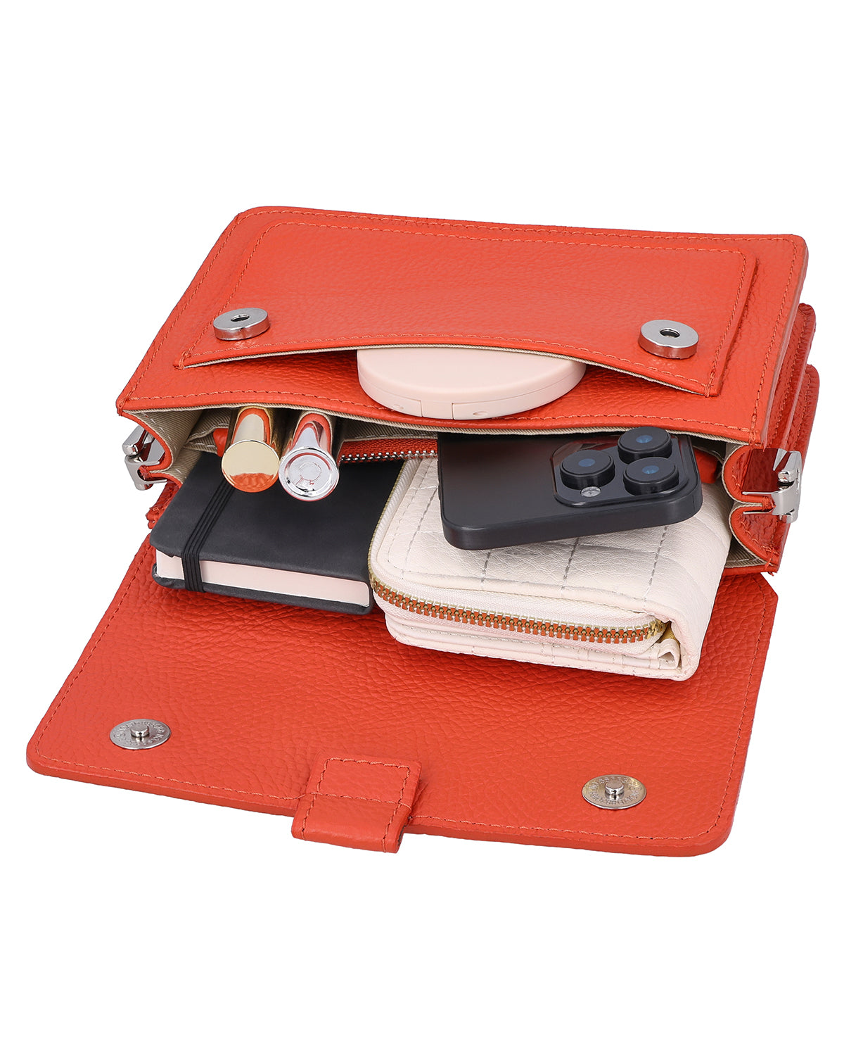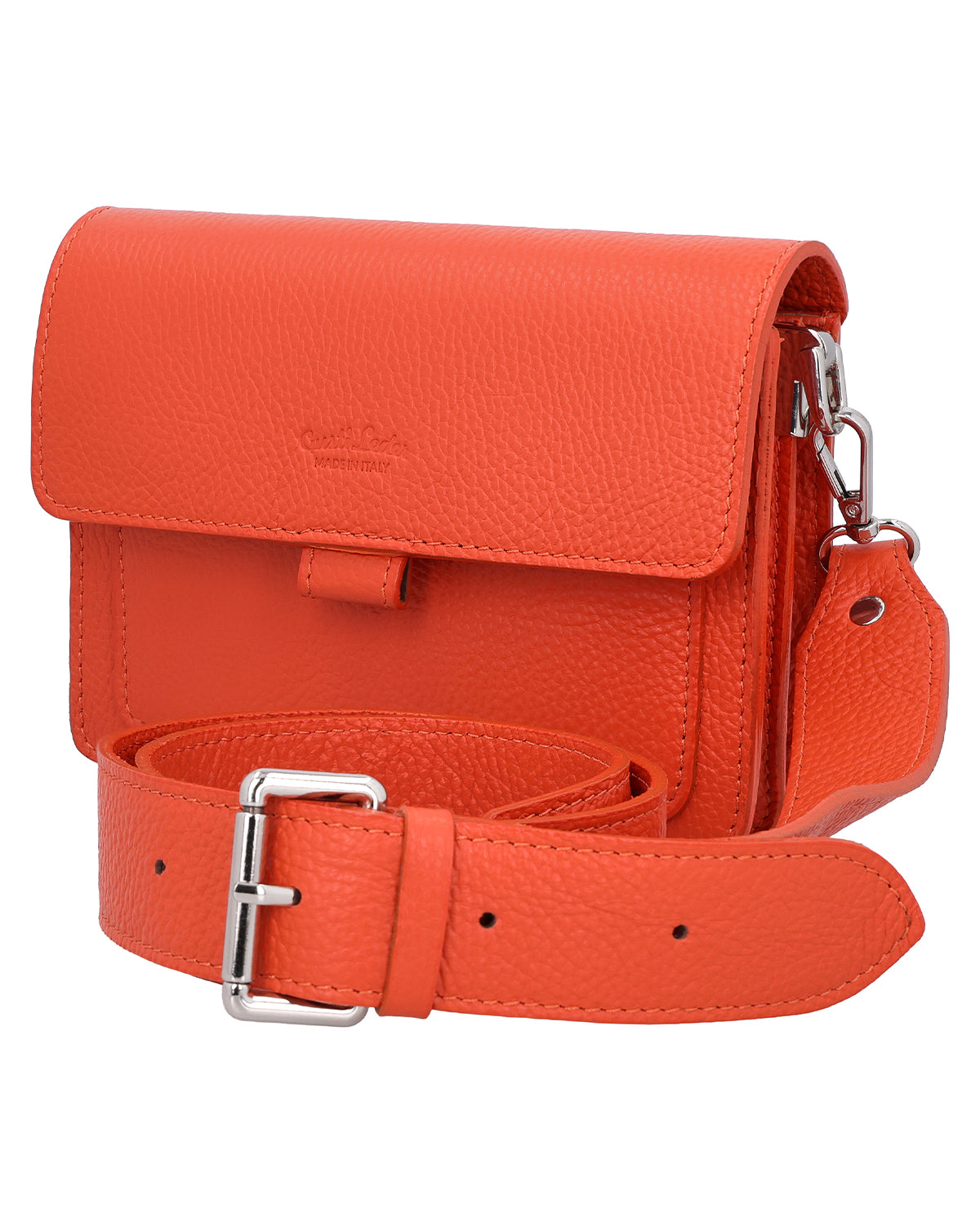 Torba na ramię torebka kopertówka torba skórzana damska pomarańczowy skórzany - Made in Italy