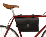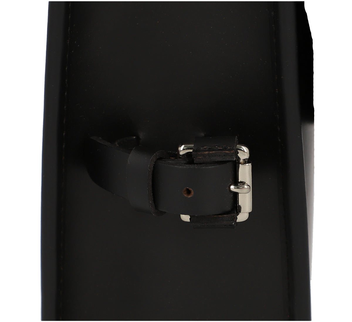 Klucze, butelka wody, telefon komórkowy, portfel i w drogę na górną rurę – dzięki eleganckim zapięciu na klamrę. Mała torebka w kolorze czarnym zachwyca wyglądem aktówki, zapinanej na srebrny metalowy zatrzask. Dzięki trzem klamrom torba pozostaje mocno zakotwiczona, a dzięki gładkiej powierzchni jest odporna na wszelkie warunki atmosferyczne. Nadaj swojemu rowerowi klasyczny, zabytkowy charakter dzięki nowemu towarzyszowi – „Jefowi P.”