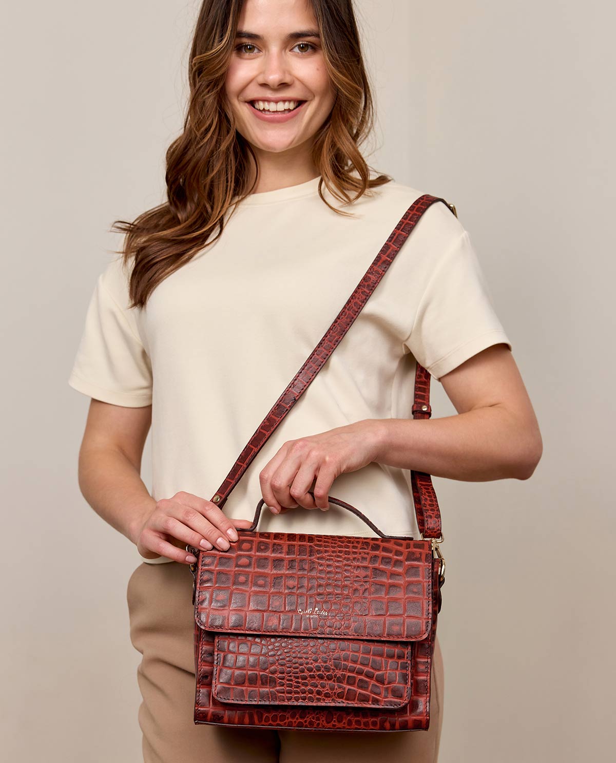 "Caren" to elegancka torba na ramię, która zachwyca swoim szlachetnym brązowym skórą i przemyślanym designem. Oferuje idealną kombinację stylu i funkcjonalności, doskonale dopasowując się do Twojego codziennego życia. Torba posiada trzy oddzielne kieszenie, które zapewniają przejrzystą organizację i pomagają szybko znaleźć Twoje rzeczy. Niezależnie od tego, czy chodzi o Twój smartfon, klucze czy kosmetyki – z "Caren" masz wszystko, czego potrzebujesz, zawsze pod ręką.