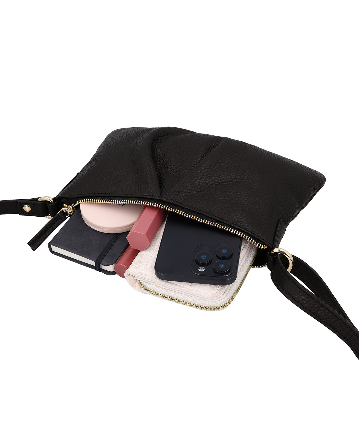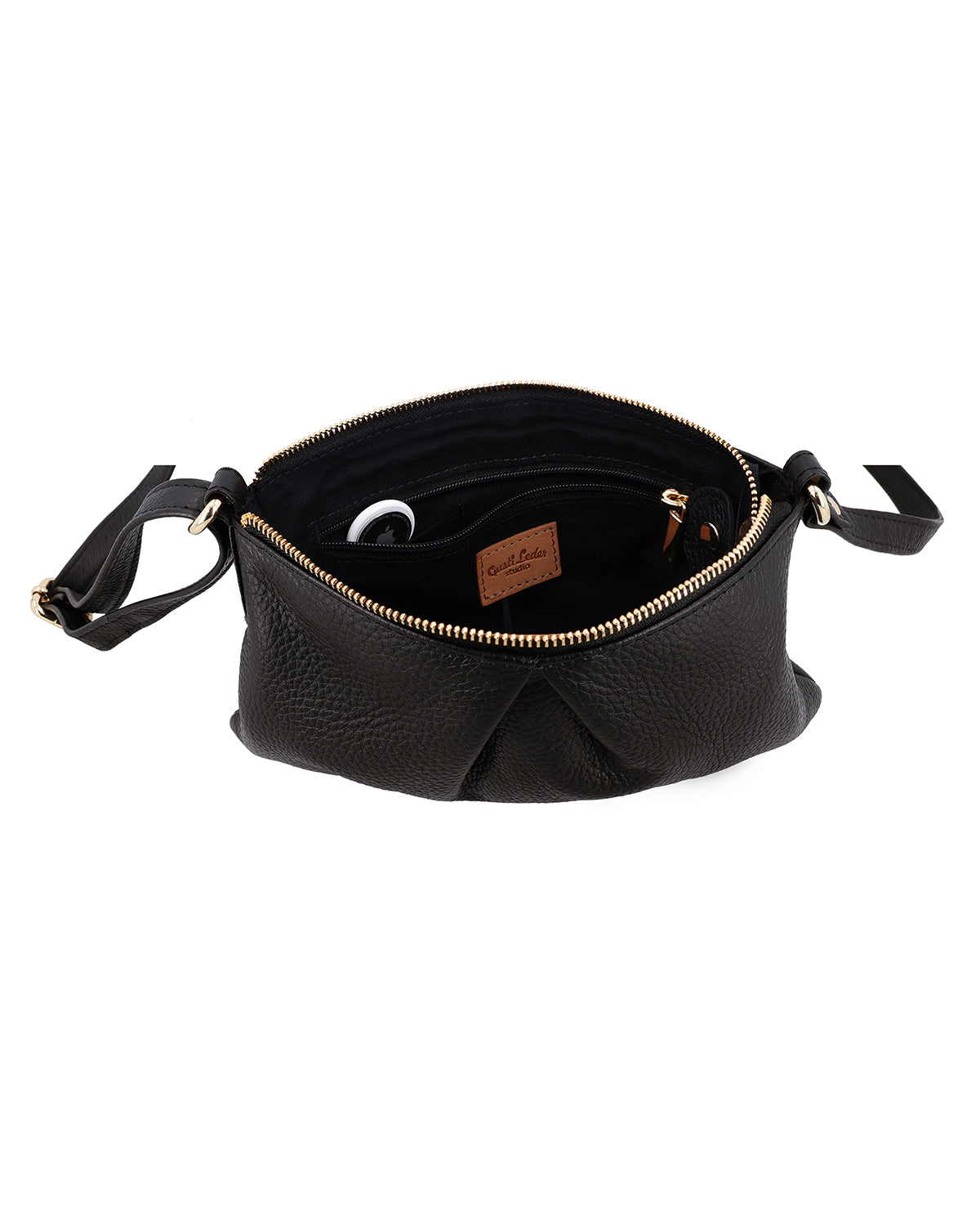 Mała torebka „Aurelie” to czarna skórzana torebka damska, która łączy w sobie czyste linie z przemyślaną funkcjonalnością. Dodatkowe bezpieczeństwo zapewnia ukryta kieszeń na AirTag, a odpinany brelok do kluczy pozwala mieć najważniejsze przedmioty zawsze pod ręką. Jedna komora główna z metalowym zamkiem błyskawicznym niezawodnie chroni zawartość i podkreśla wysoką jakość torebki. Dzięki regulowanemu paskowi na ramię torebkę „Aurelie” można nosić na różne sposoby – na ramieniu lub na skos.